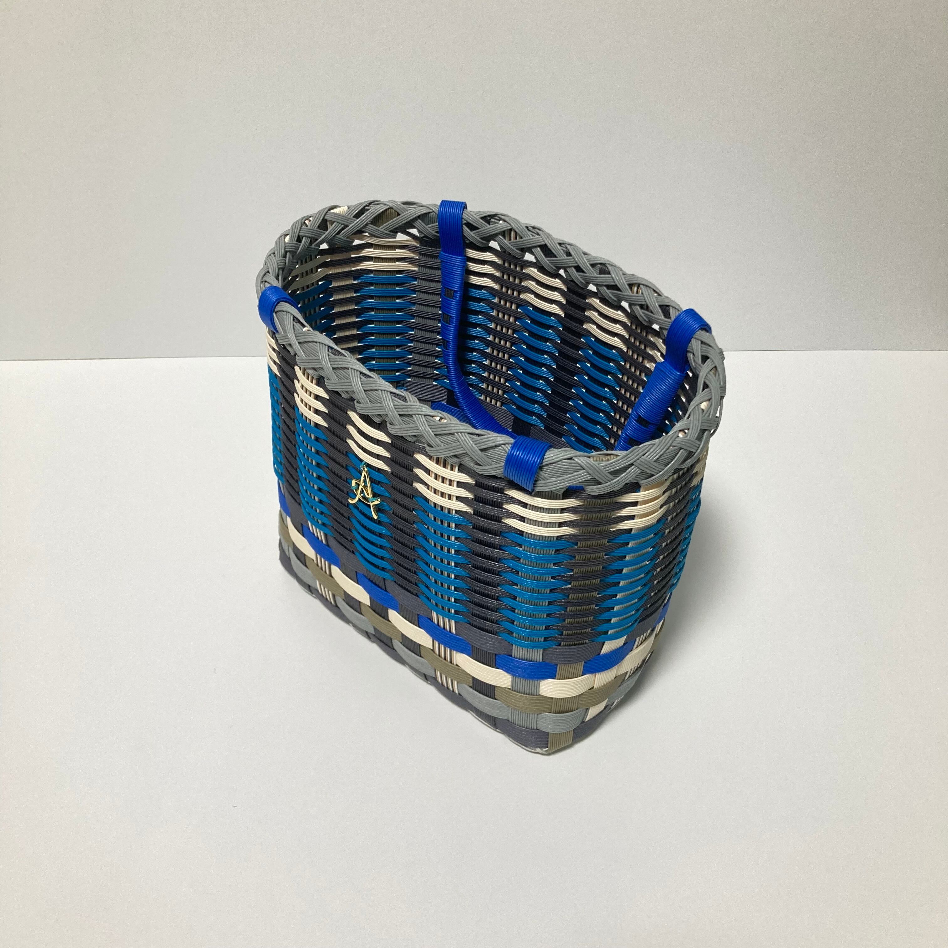 クラフトバンドで作成したカラフルで軽くて使いやすい大きさのカゴバッグです。