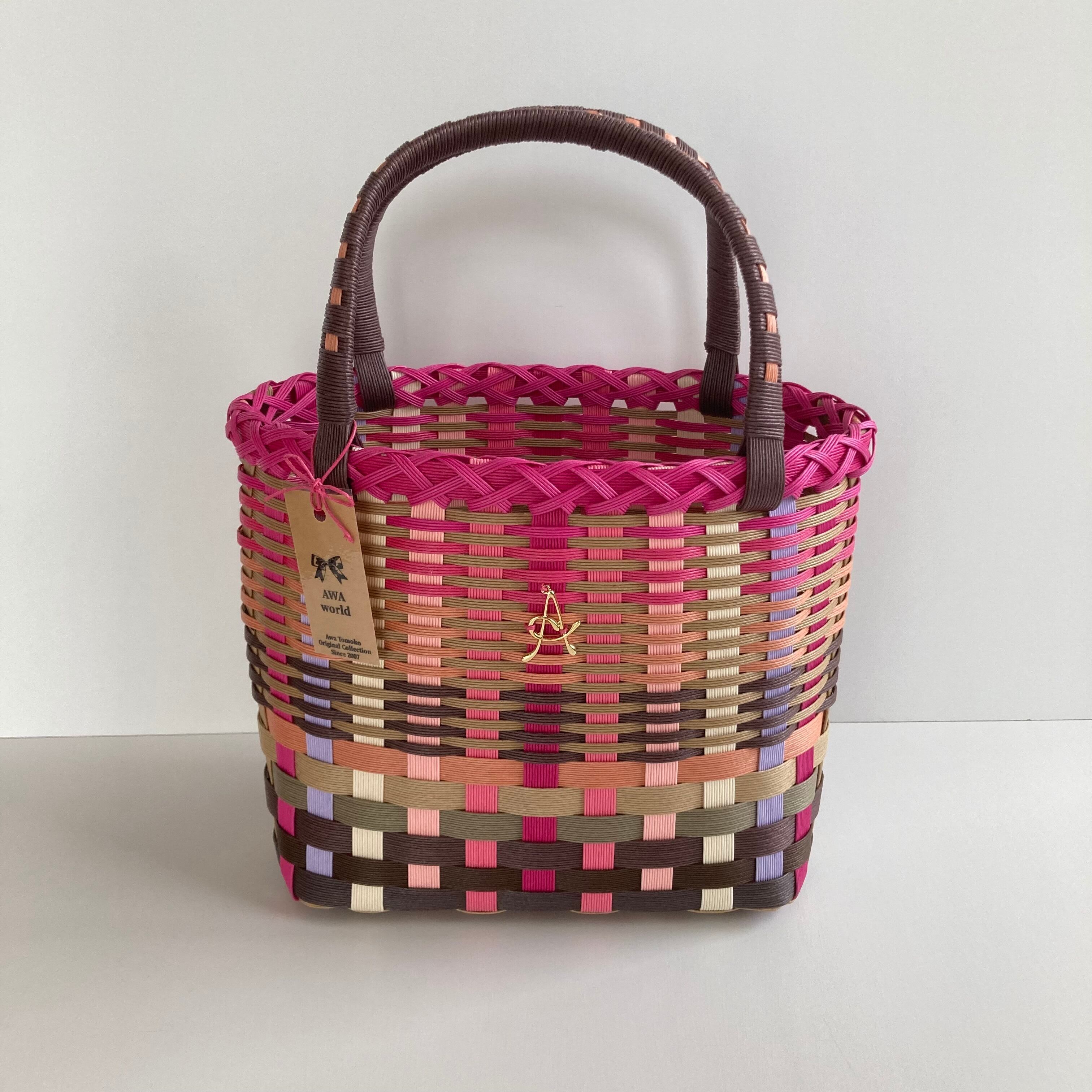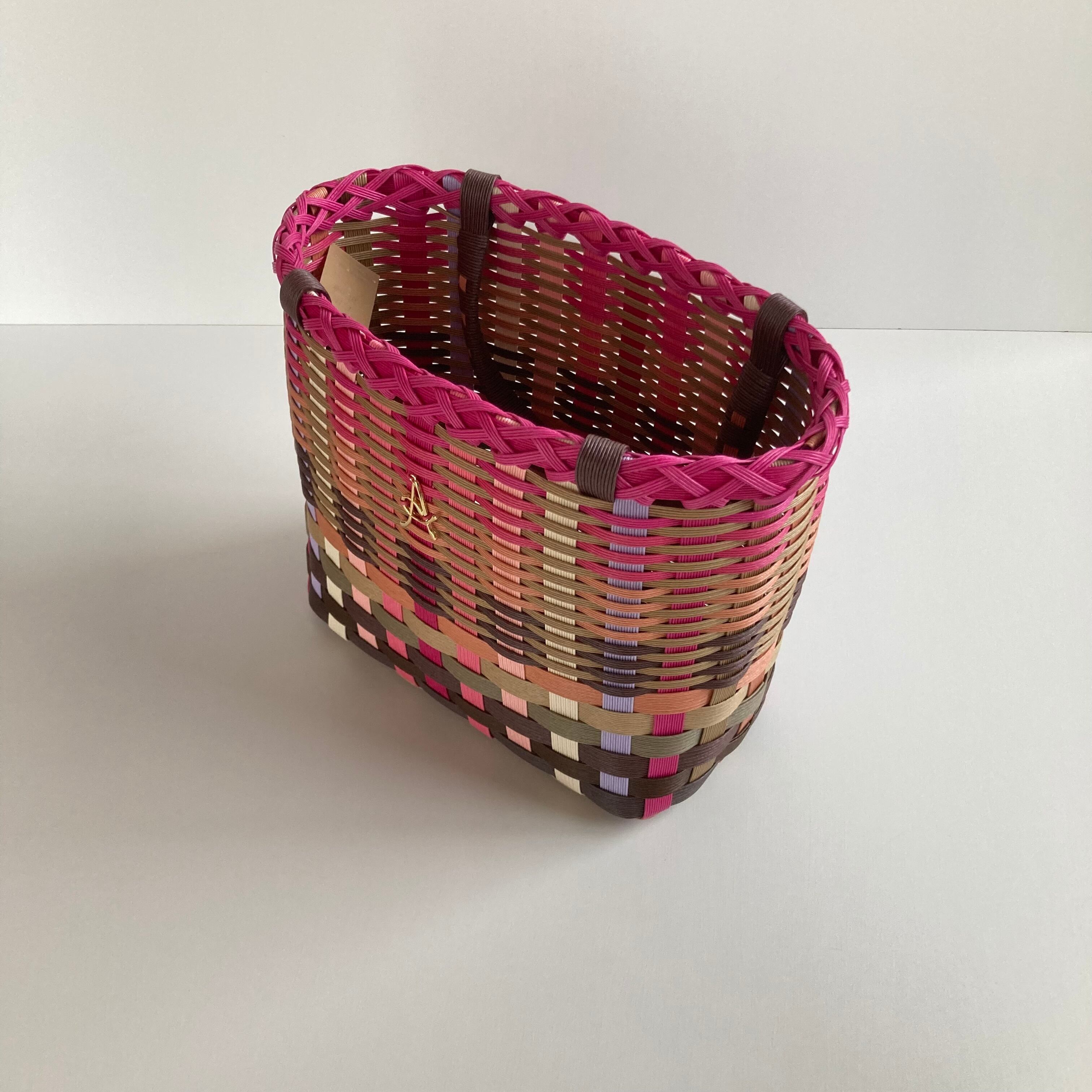 クラフトバンドで作成したカラフルで軽くて使いやすい大きさのカゴバッグです。