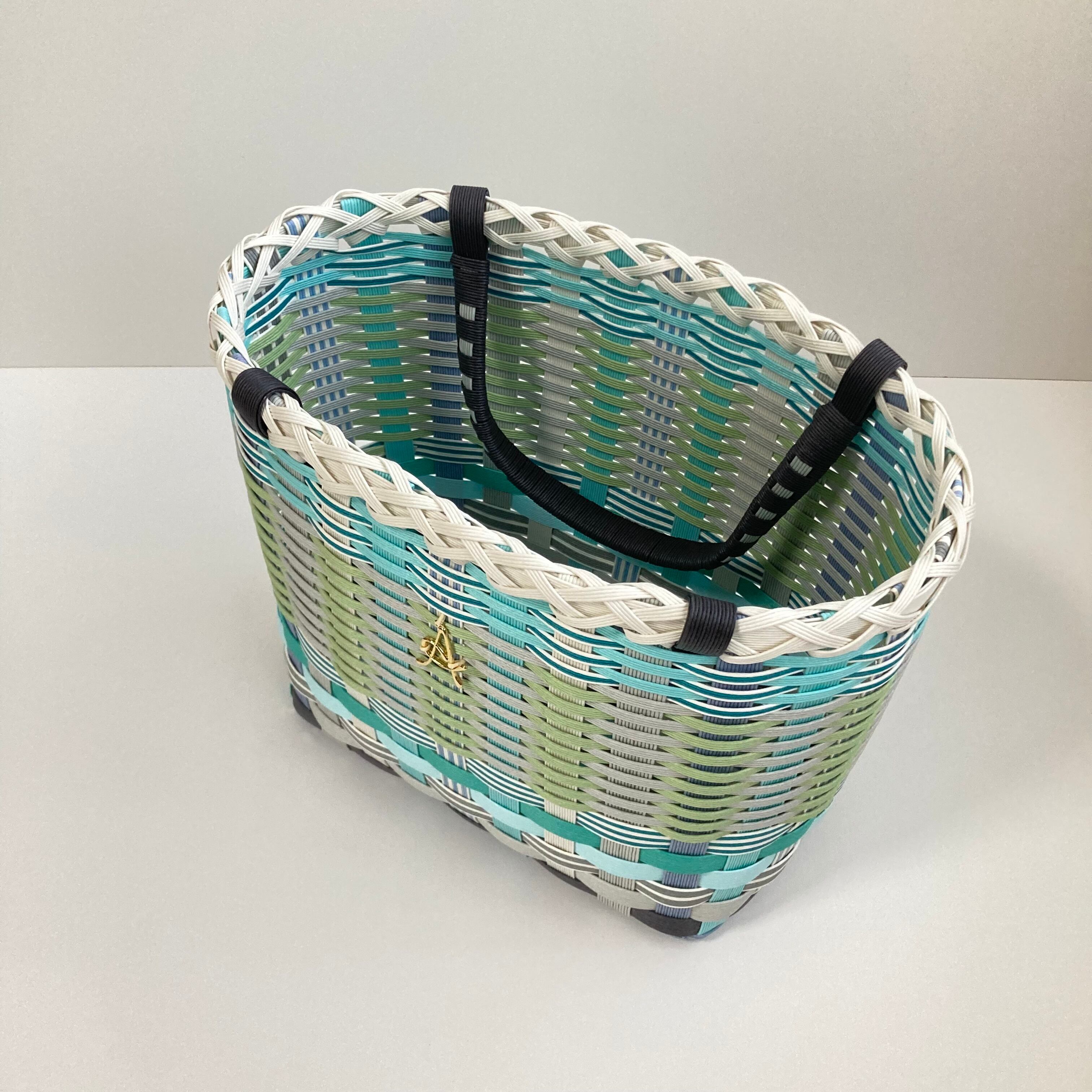 クラフトバンドで作成したカラフルで軽くて使いやすい大きさのカゴバッグです。