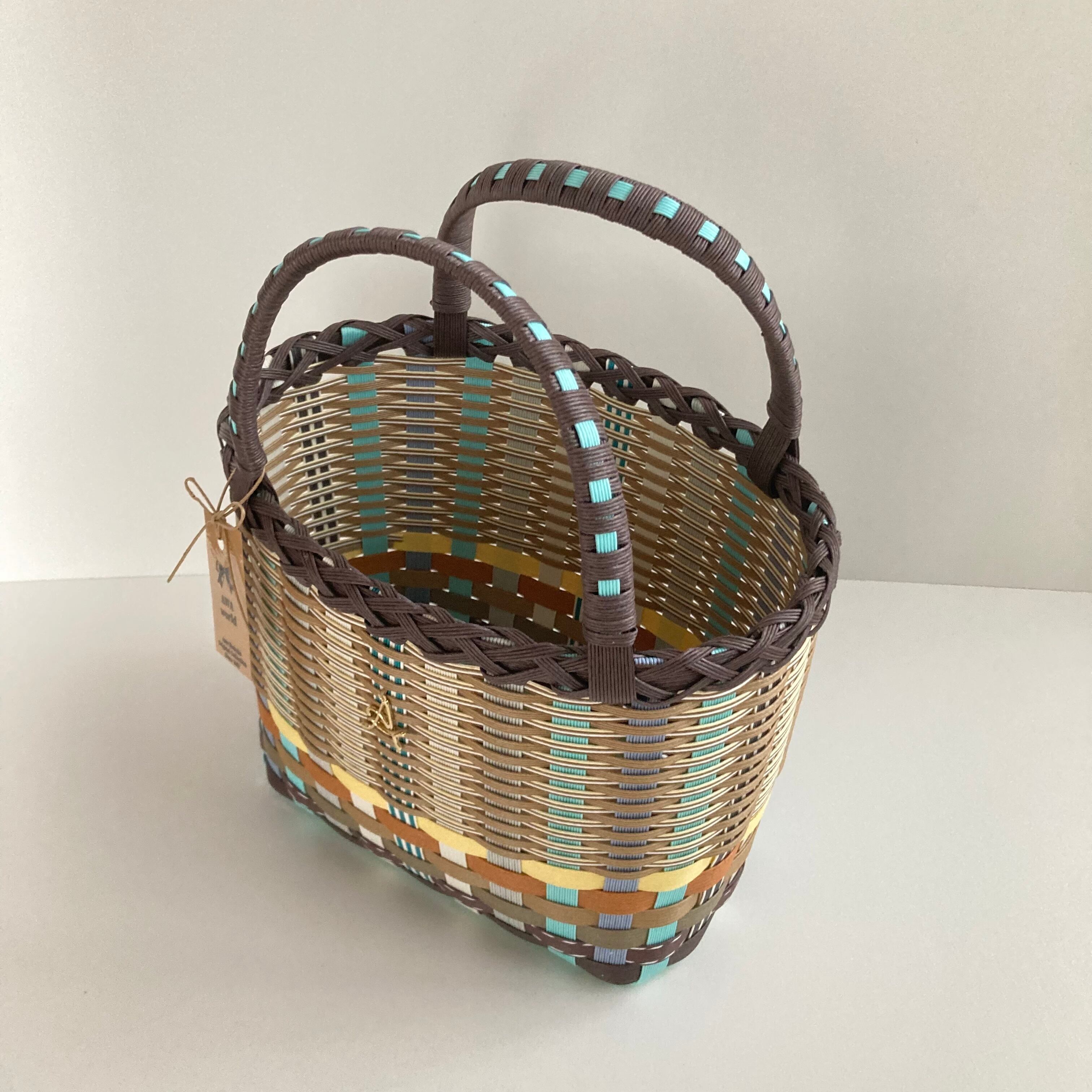 クラフトバンドで作成したカラフルで軽くて使いやすい大きさのカゴバッグです。