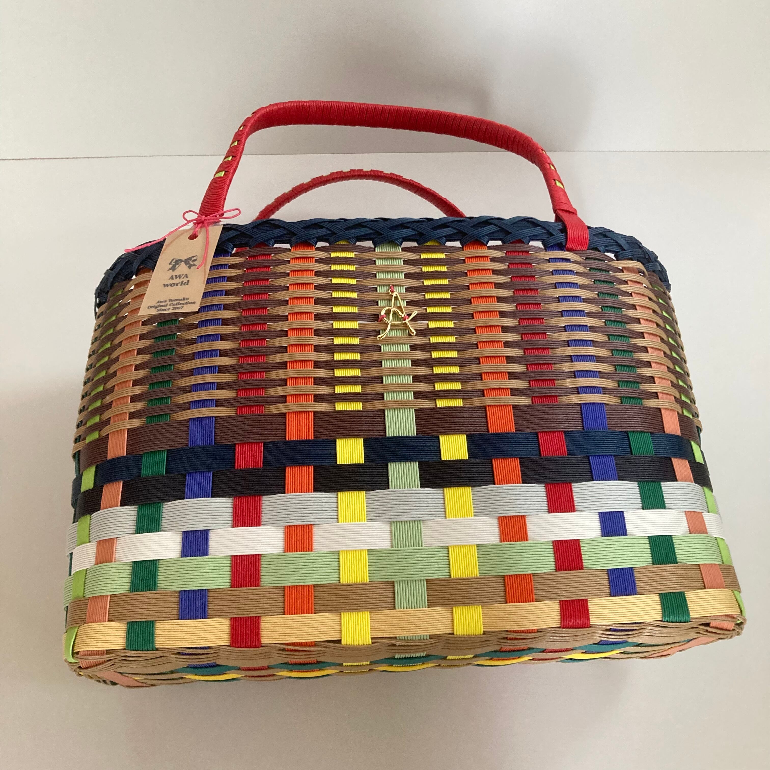 クラフトバンドで作成したカラフルで軽くて使いやすい大きさのカゴバッグです。