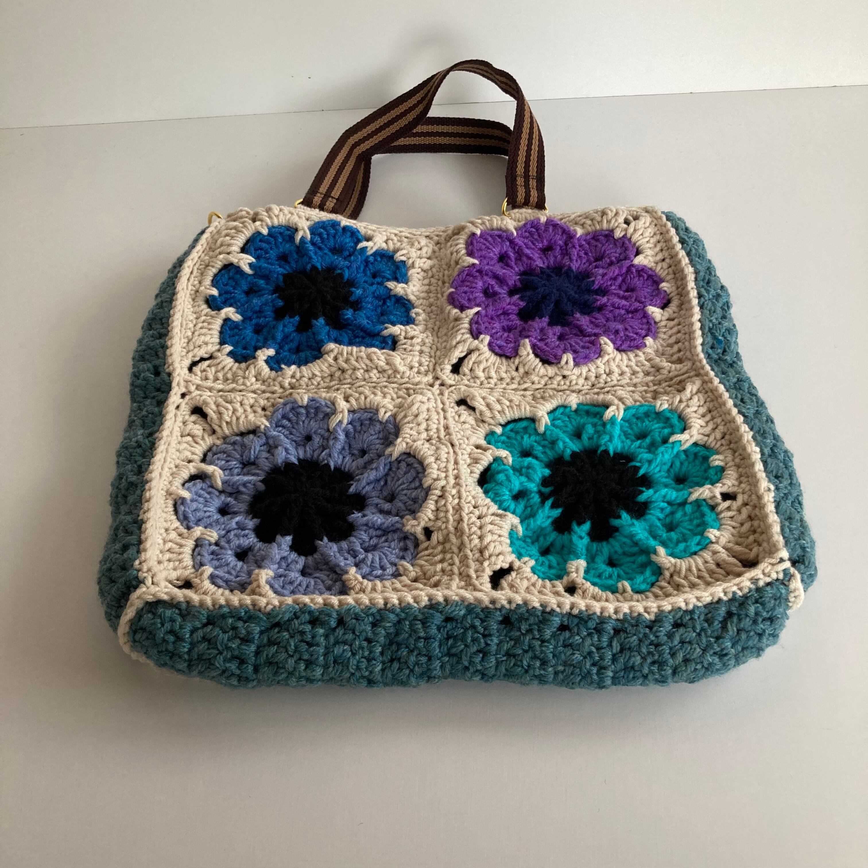 可愛いお花のモチーフをつなげて使いやすい形のバッグを作りました。