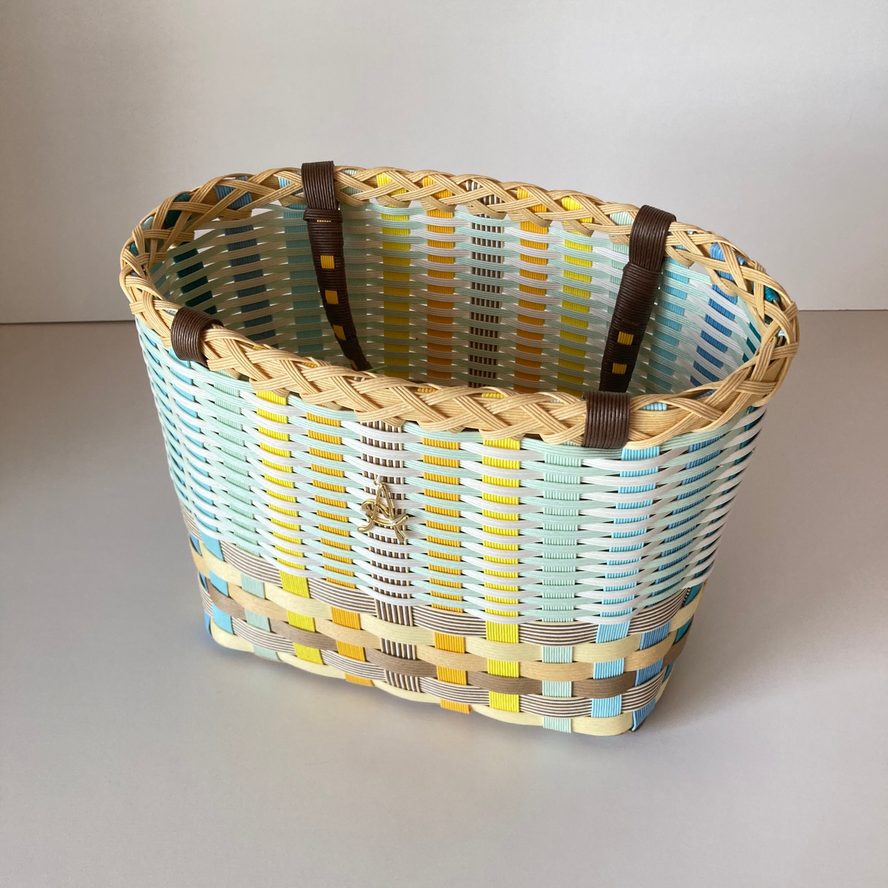 クラフトバンドで作成したカラフルで軽くて使いやすい大きさのカゴバッグです。