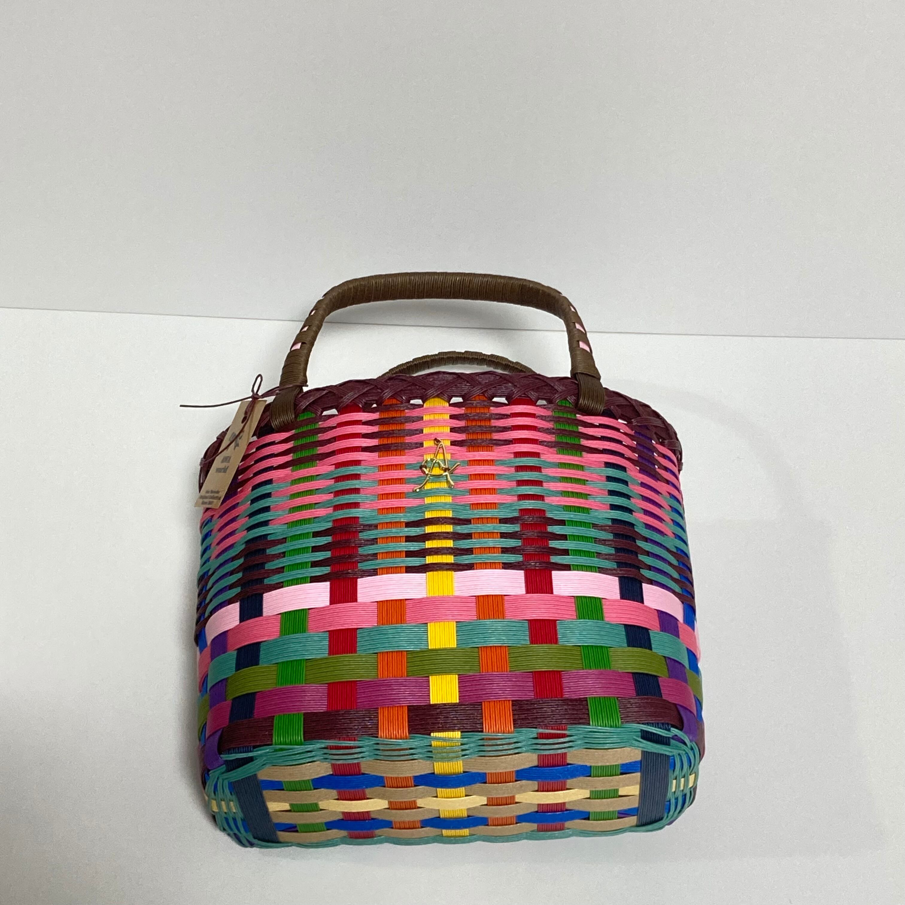 クラフトバンドで作成したカラフルで軽くて使いやすい大きさのカゴバッグです。