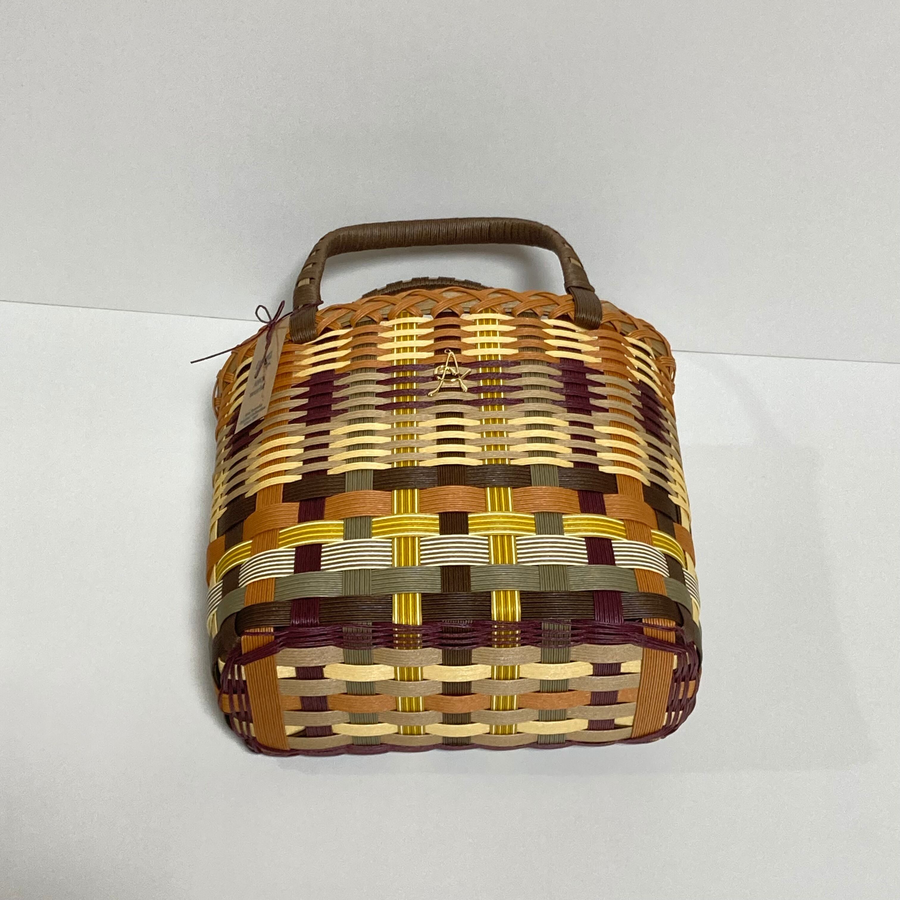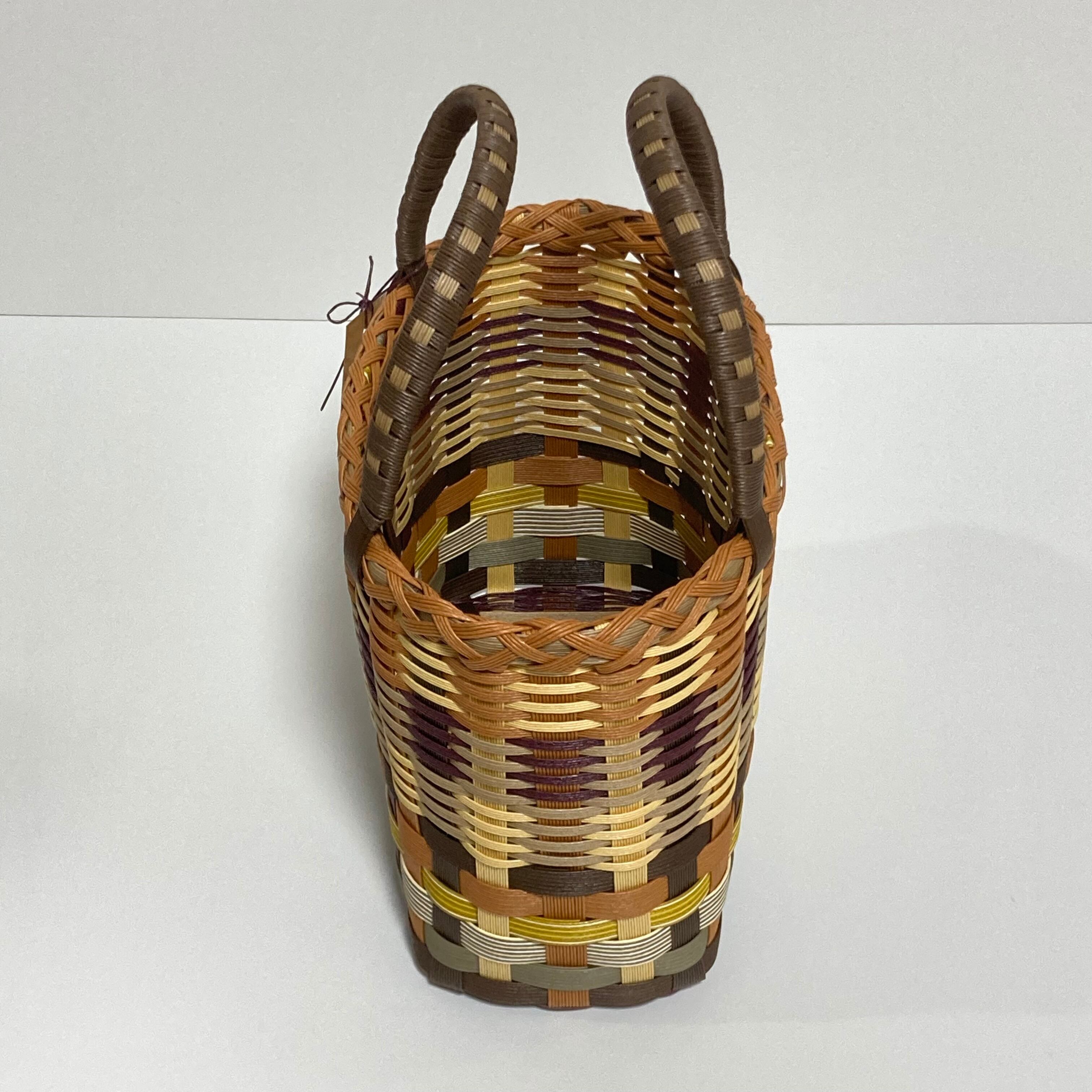 クラフトバンドで作成したカラフルで軽くて使いやすい大きさのカゴバッグです。