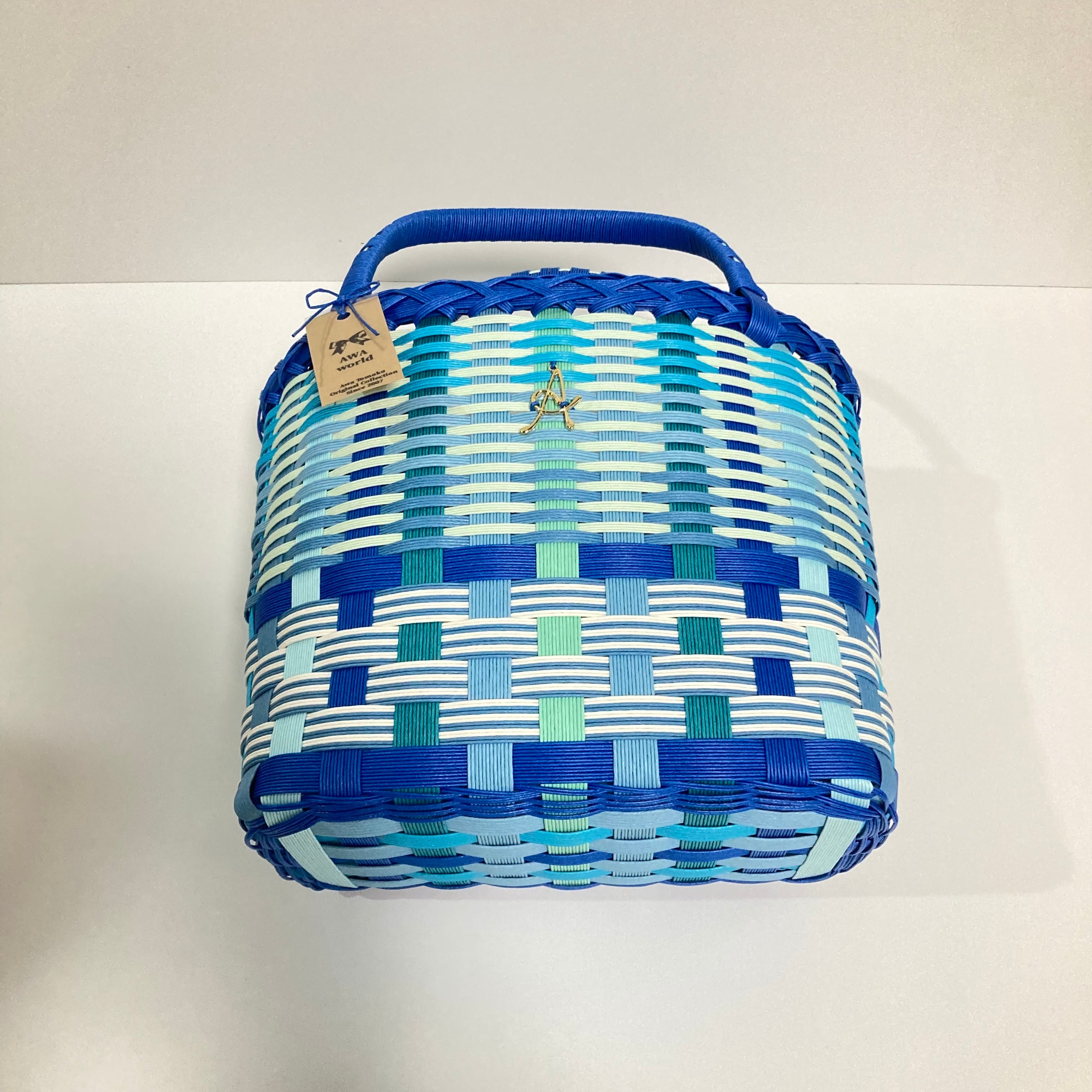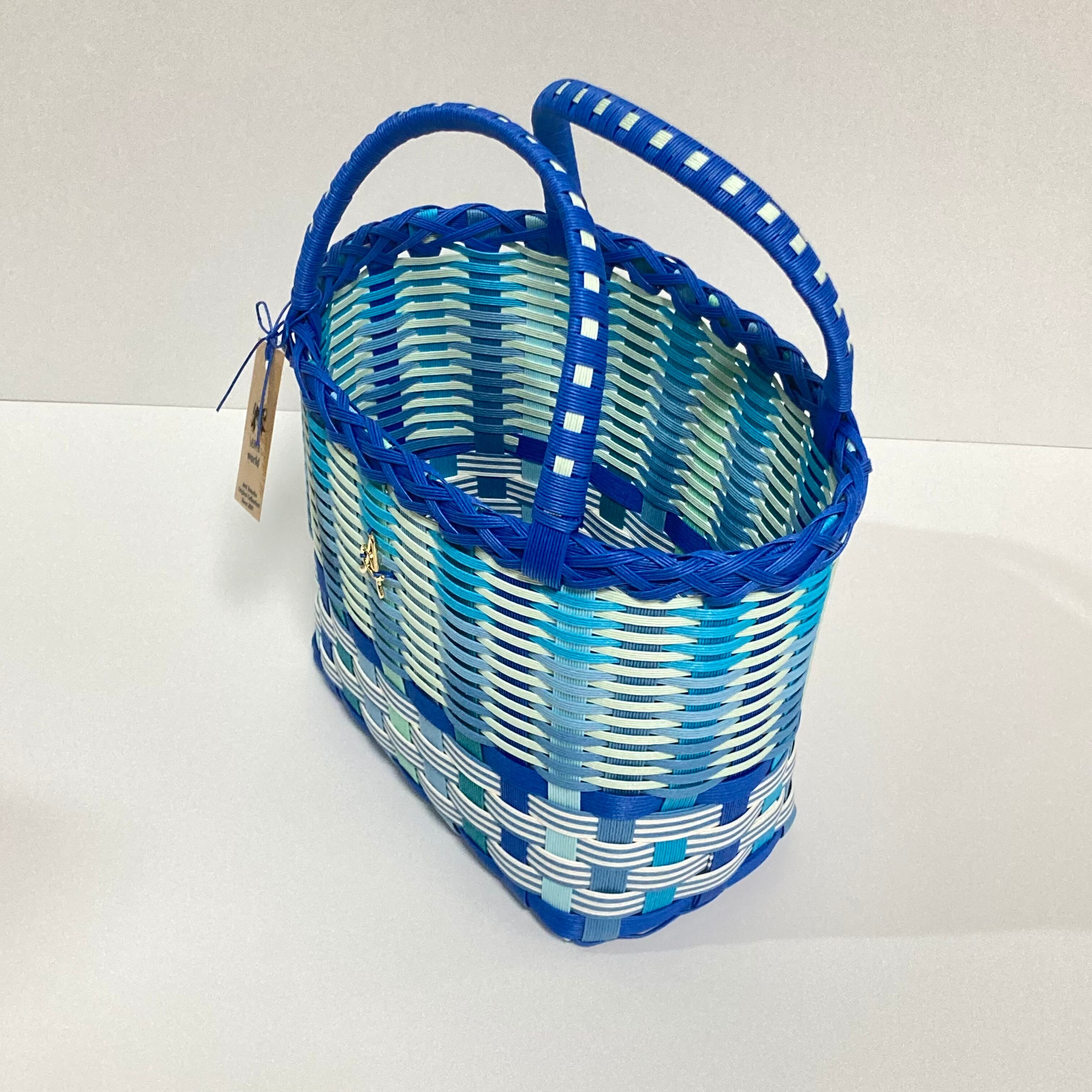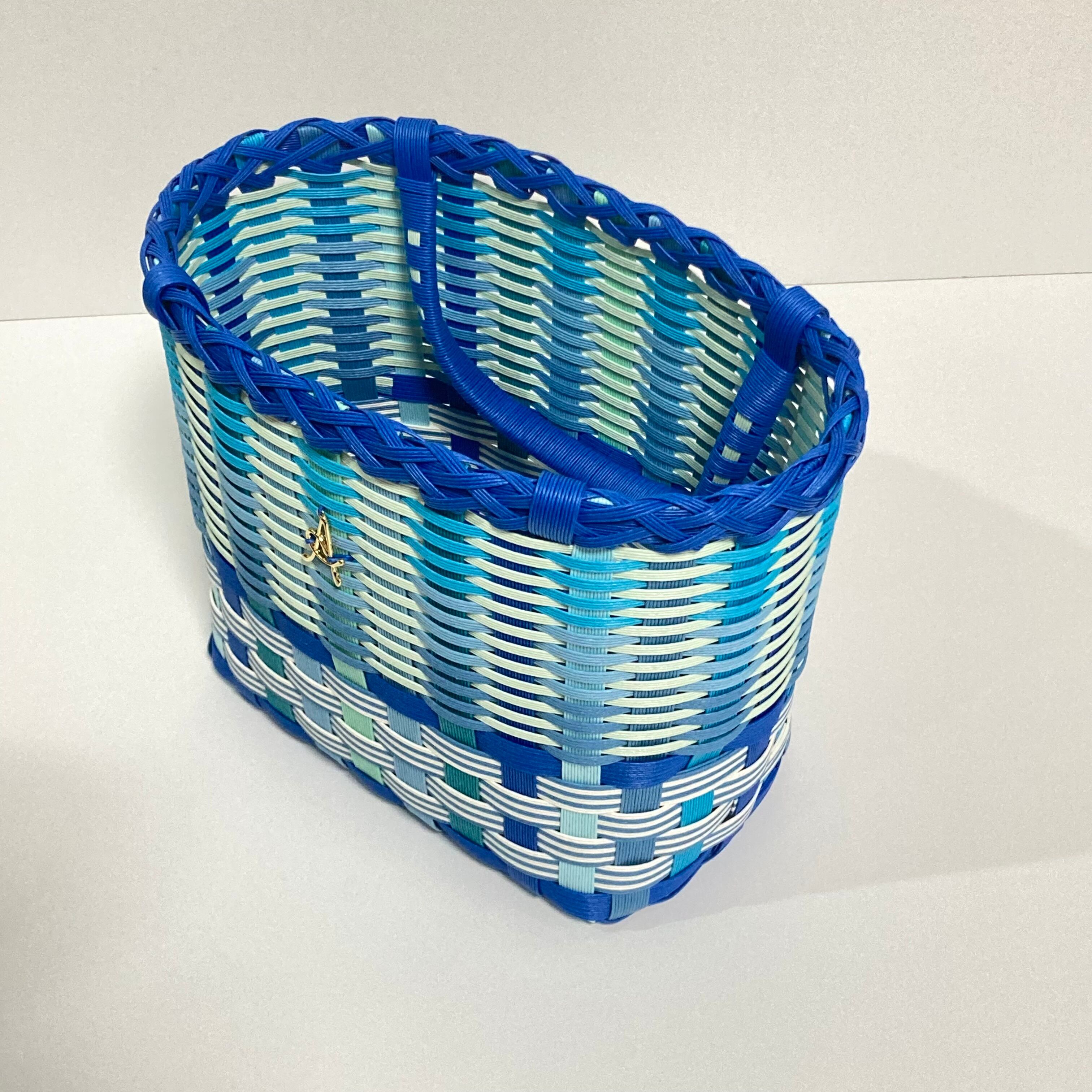 クラフトバンドで作成したカラフルで軽くて使いやすい大きさのカゴバッグです。