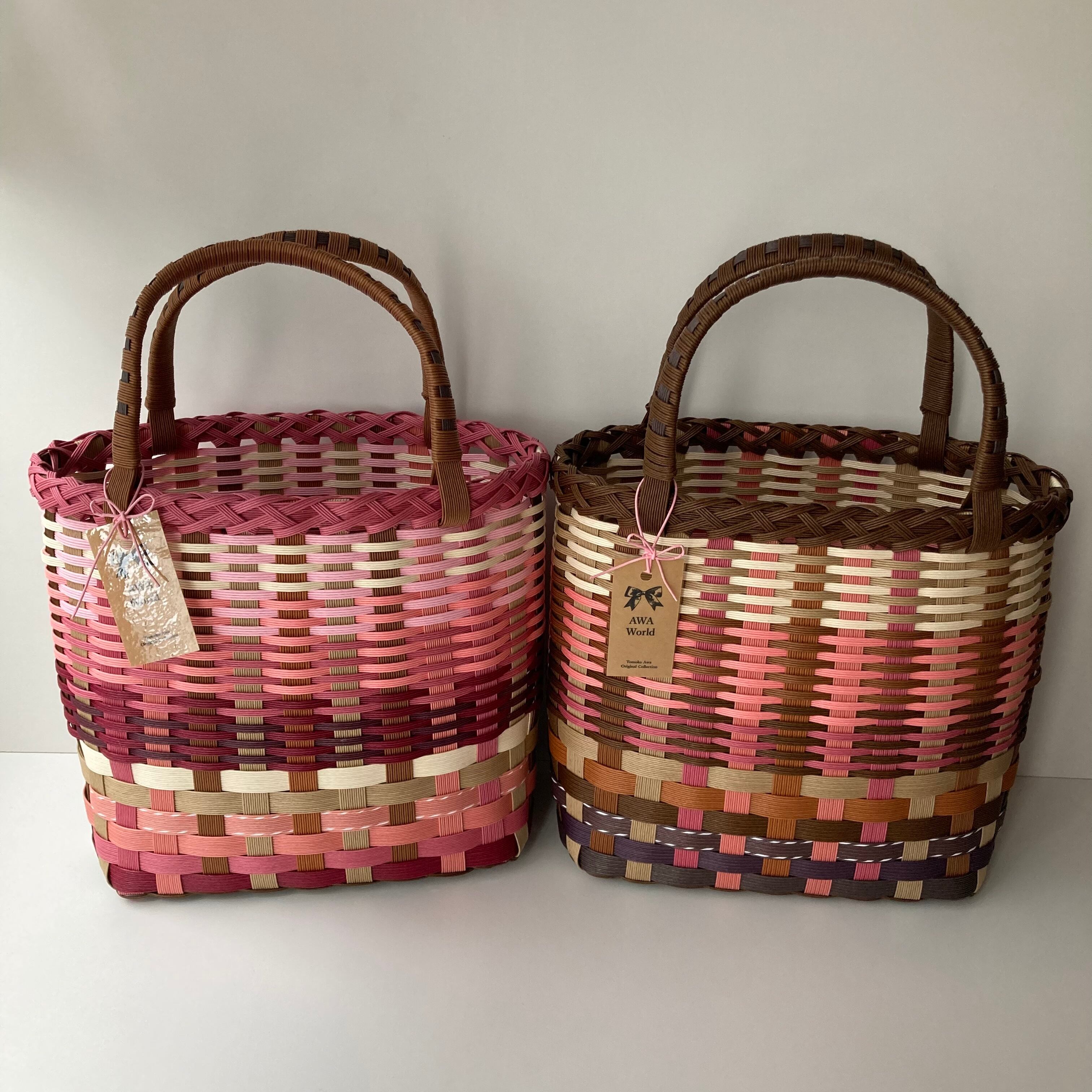 クラフトバンドで作成したカラフルで軽くて使いやすい大きさのカゴバッグです。