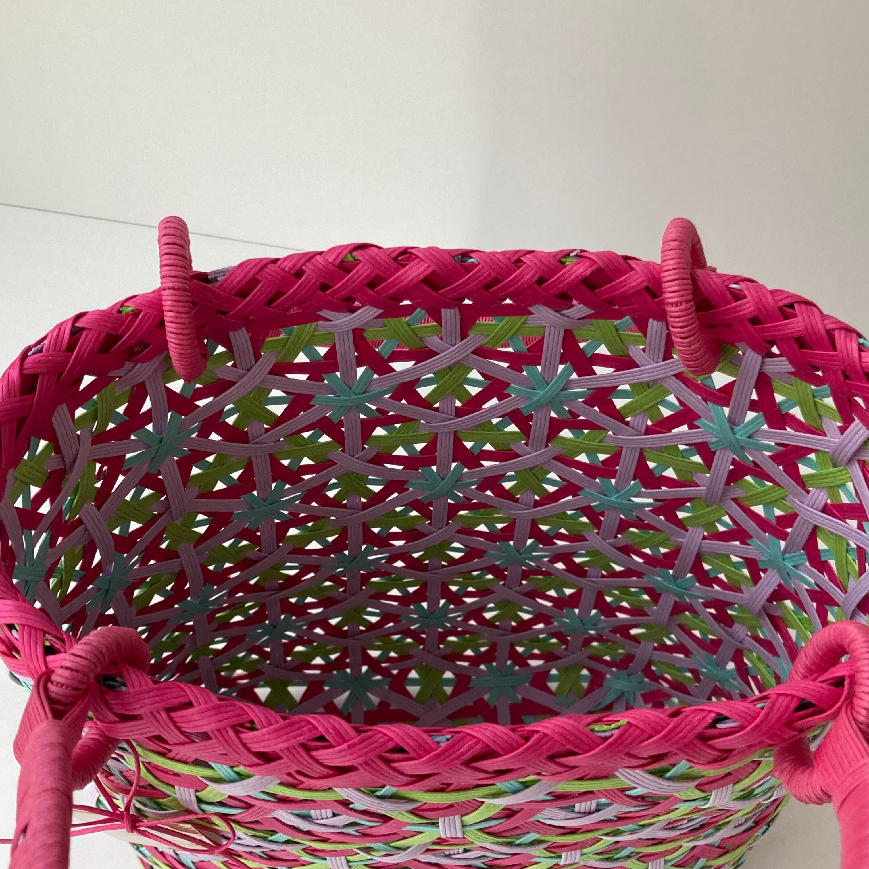 クラフトバンドで作成したカラフルで軽くて使いやすい大きさのカゴバッグです。