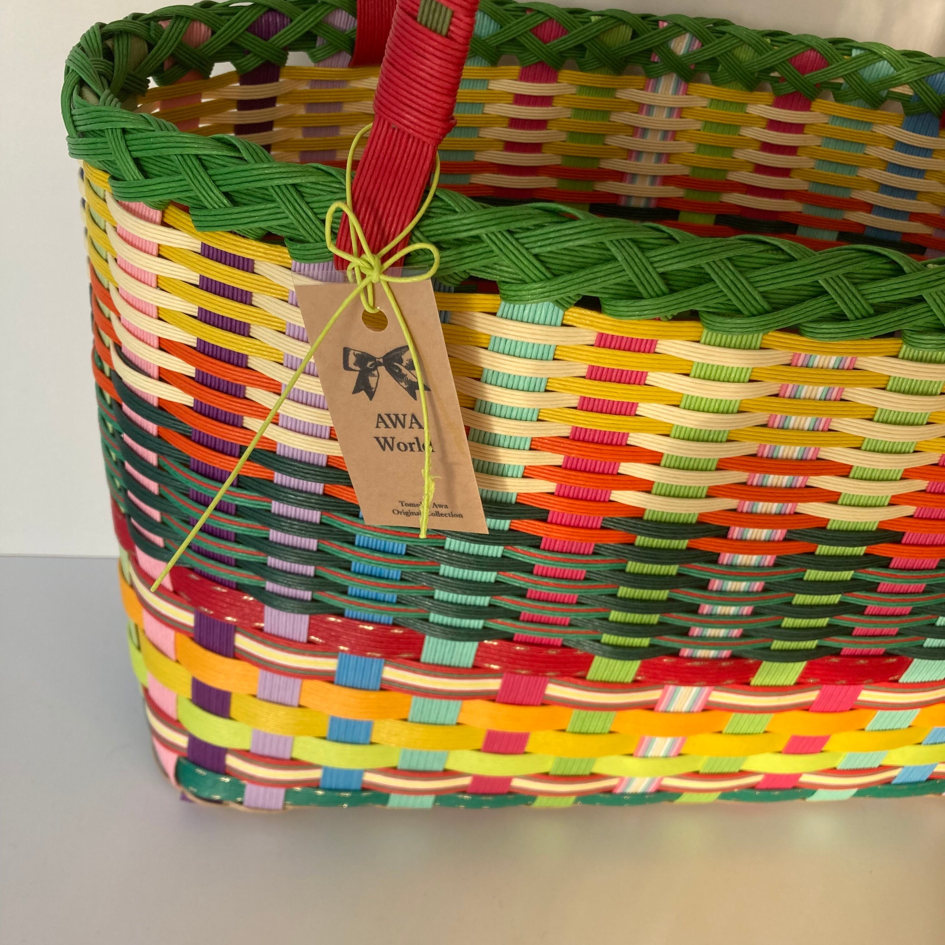 クラフトバンドで作成したカラフルで軽くて使いやすい大きさのカゴバッグです。