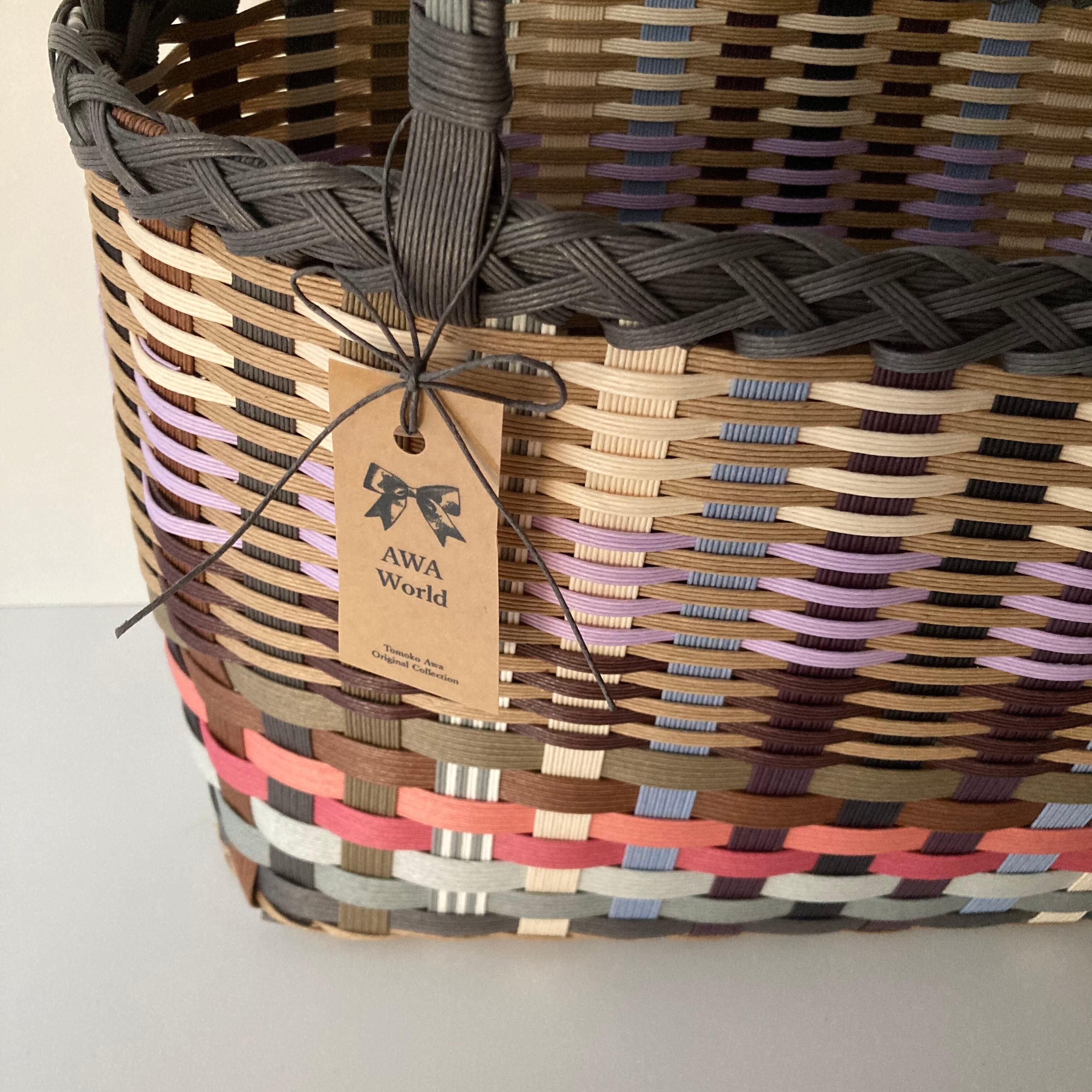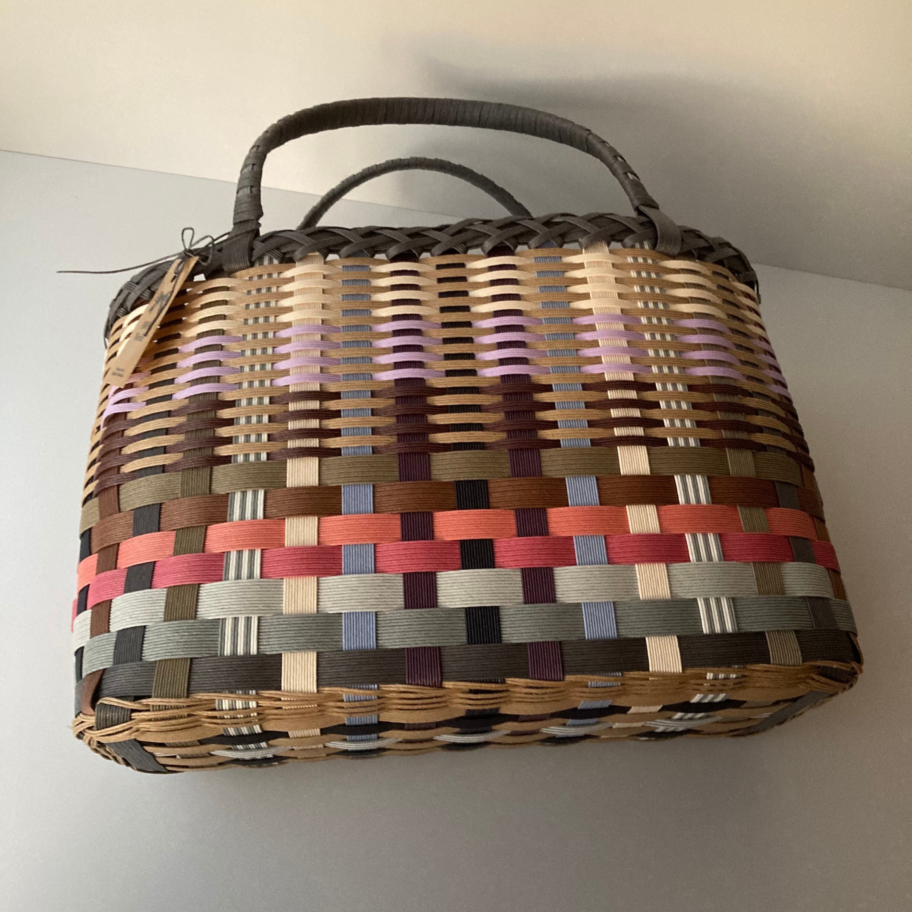 クラフトバンドで作成したカラフルで軽くて使いやすい大きさのカゴバッグです。