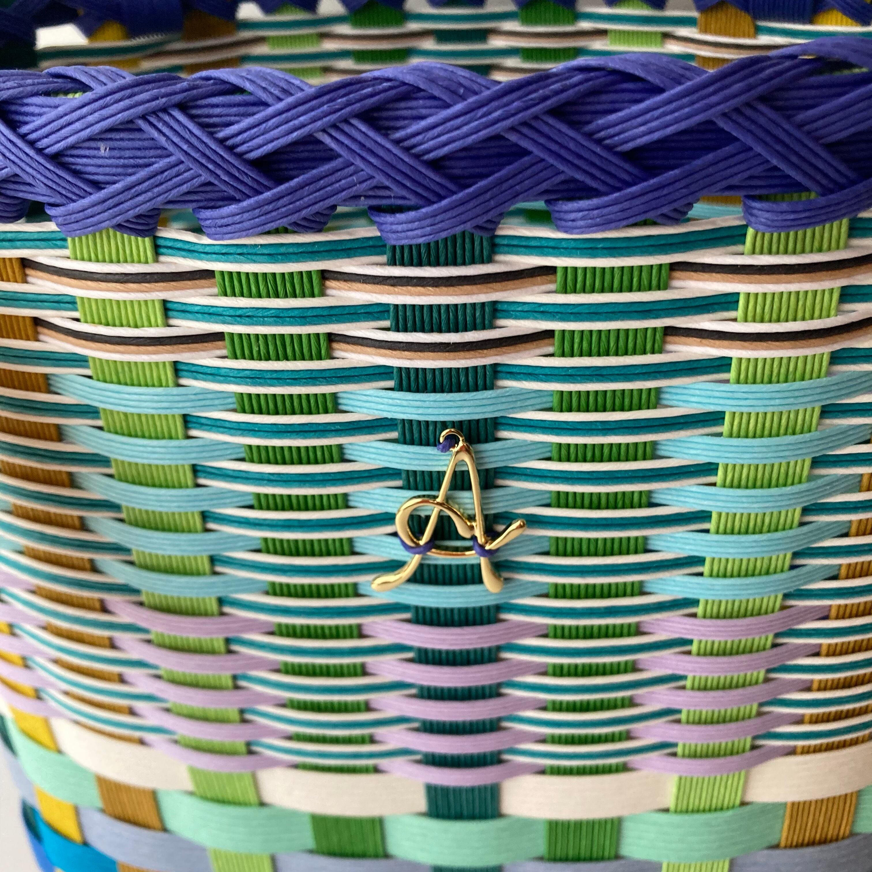 クラフトバンドで作成したカラフルで軽くて使いやすい大きさのカゴバッグです。