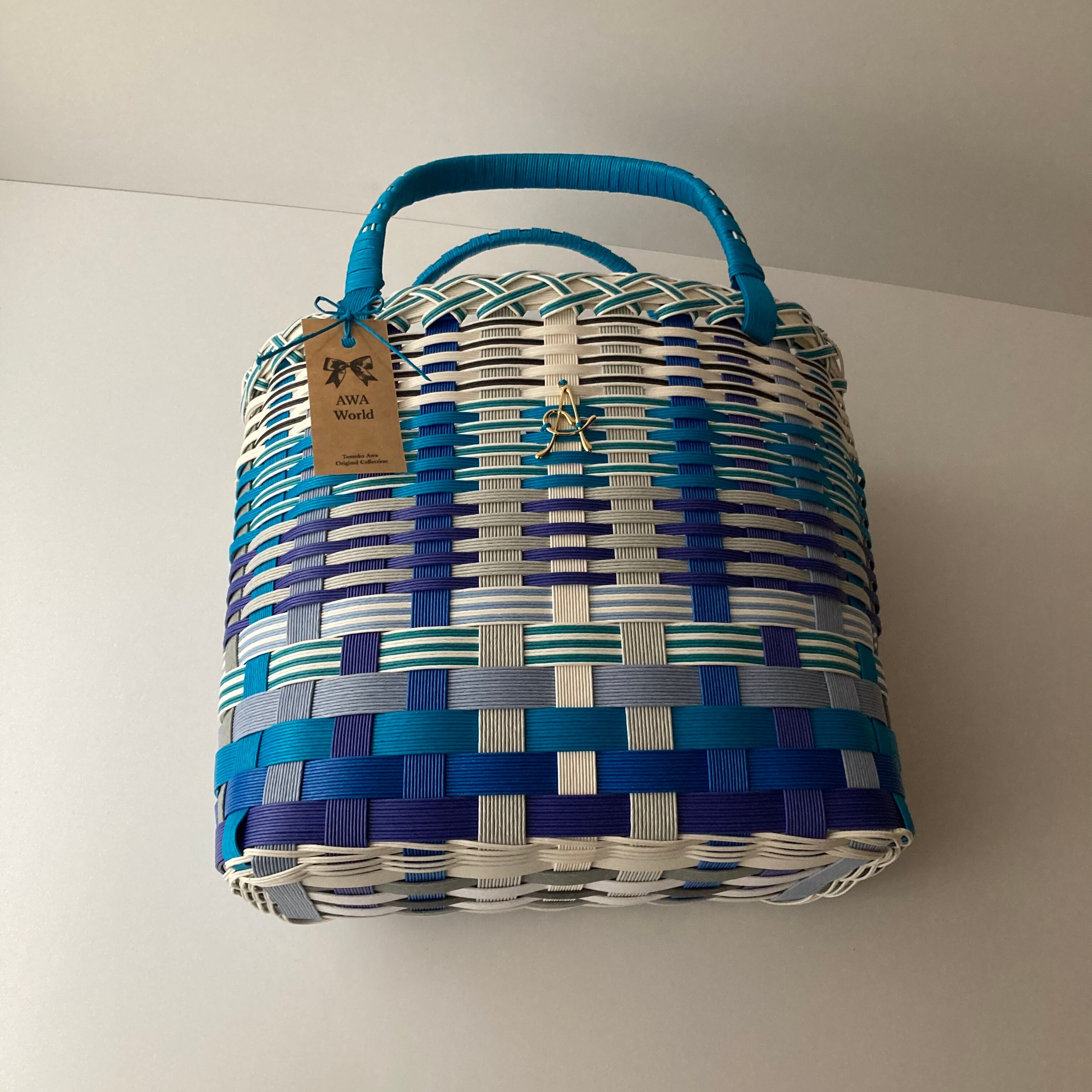 クラフトバンドで作成したカラフルで軽くて使いやすい大きさのカゴバッグです。