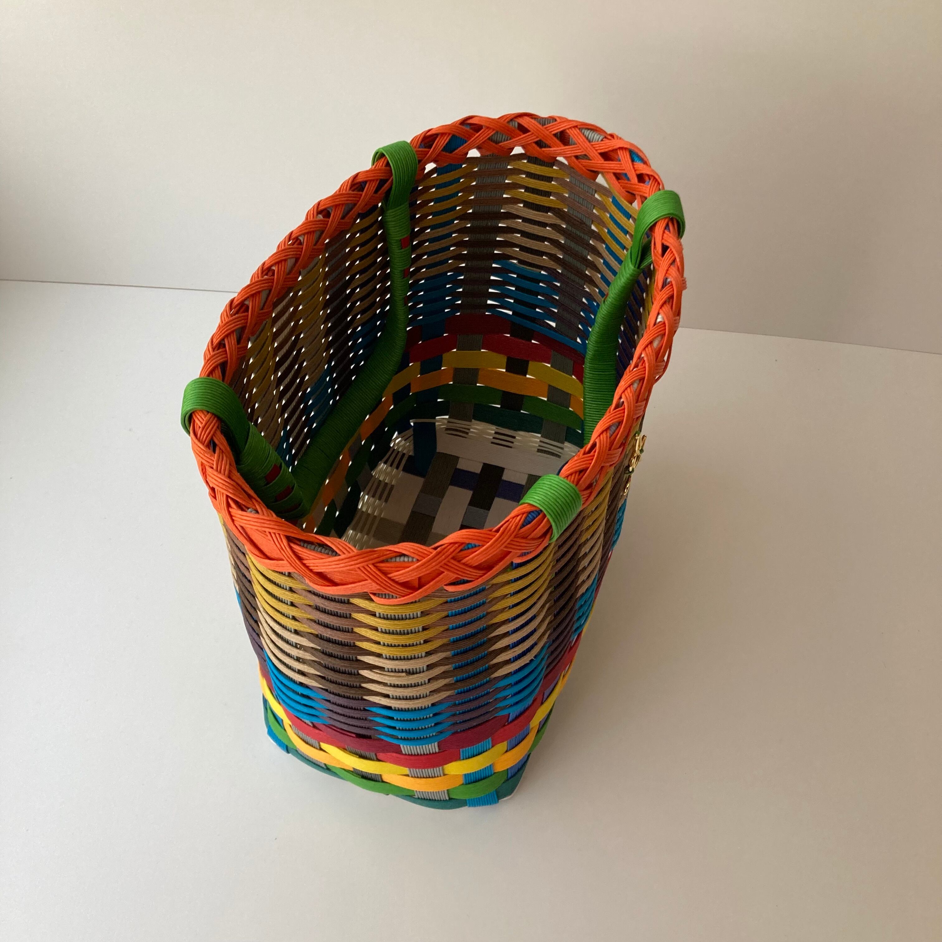 クラフトバンドで作成したカラフルで軽くて使いやすい大きさのカゴバッグです。