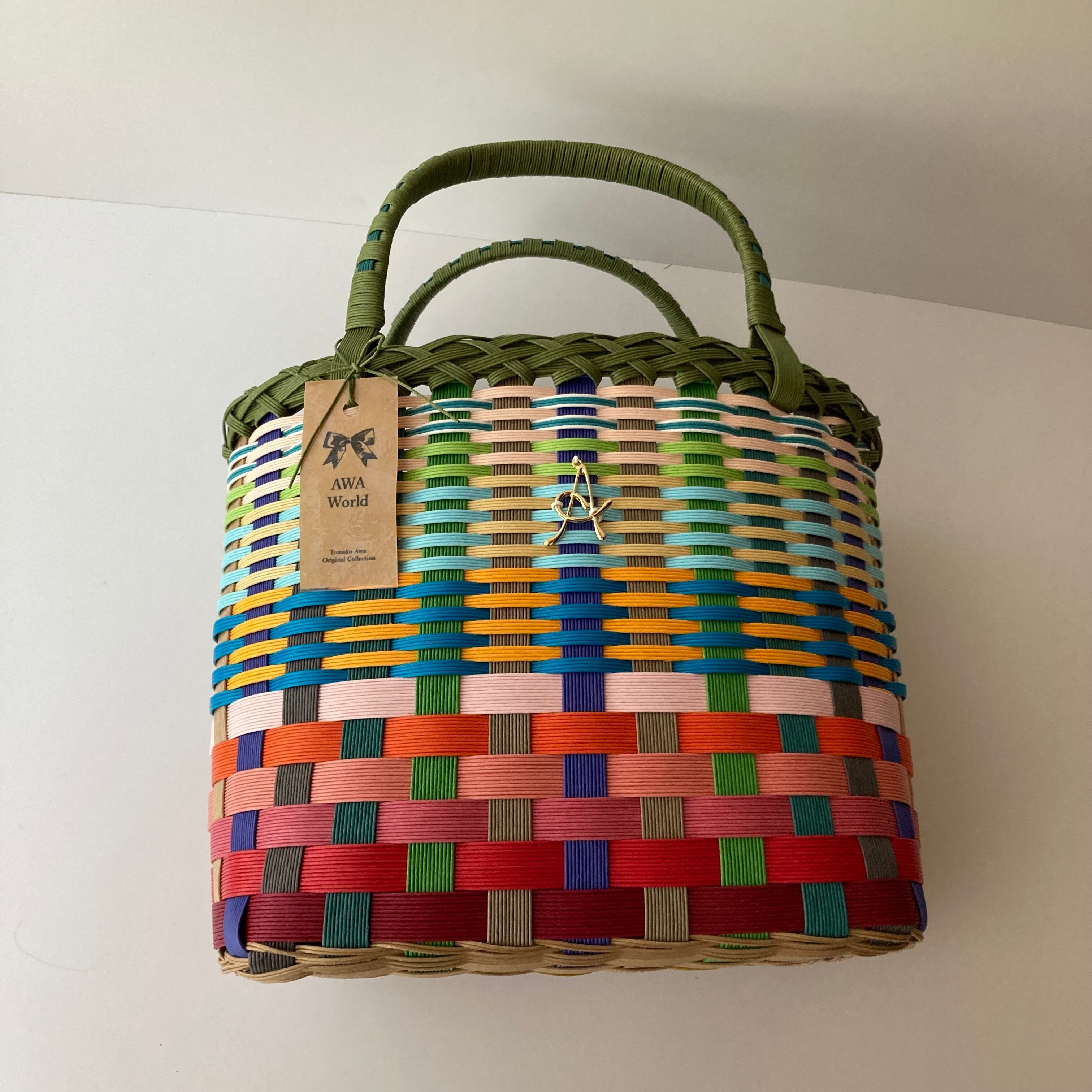 クラフトバンドで作成したカラフルで軽くて使いやすい大きさのカゴバッグです。