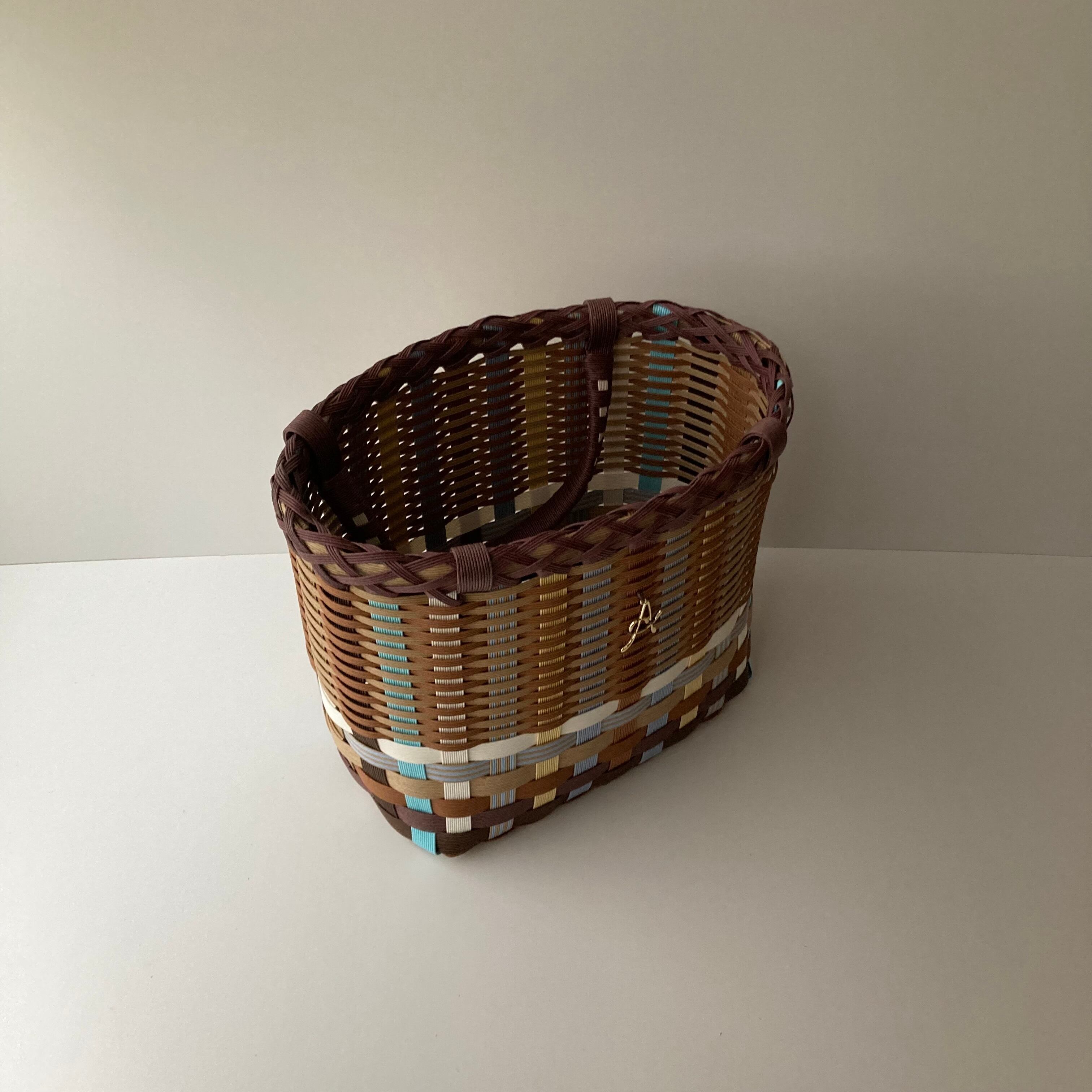 クラフトバンドで作成したカラフルで軽くて使いやすい大きさのカゴバッグです。