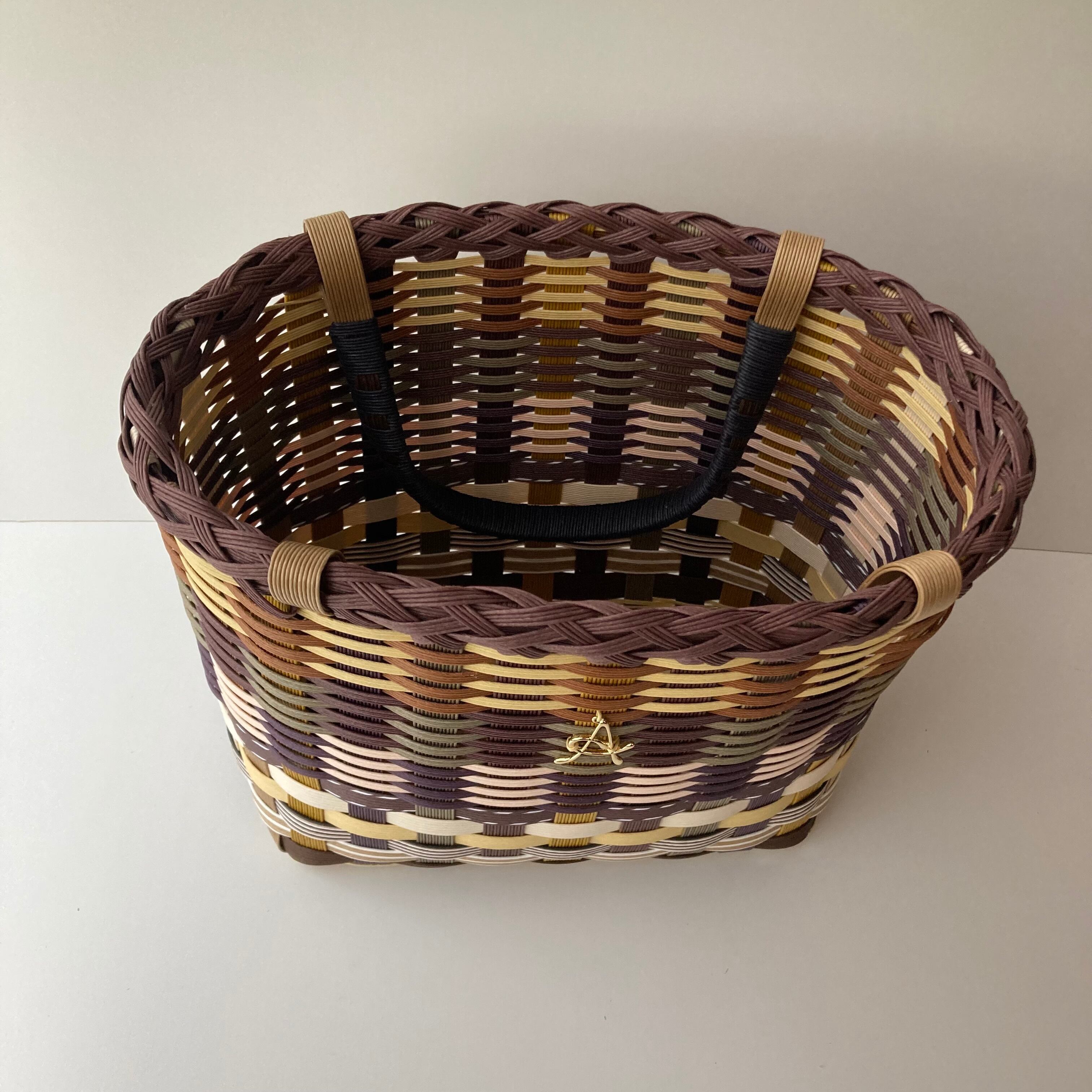 クラフトバンドで作成したカラフルで軽くて使いやすい大きさのカゴバッグです。