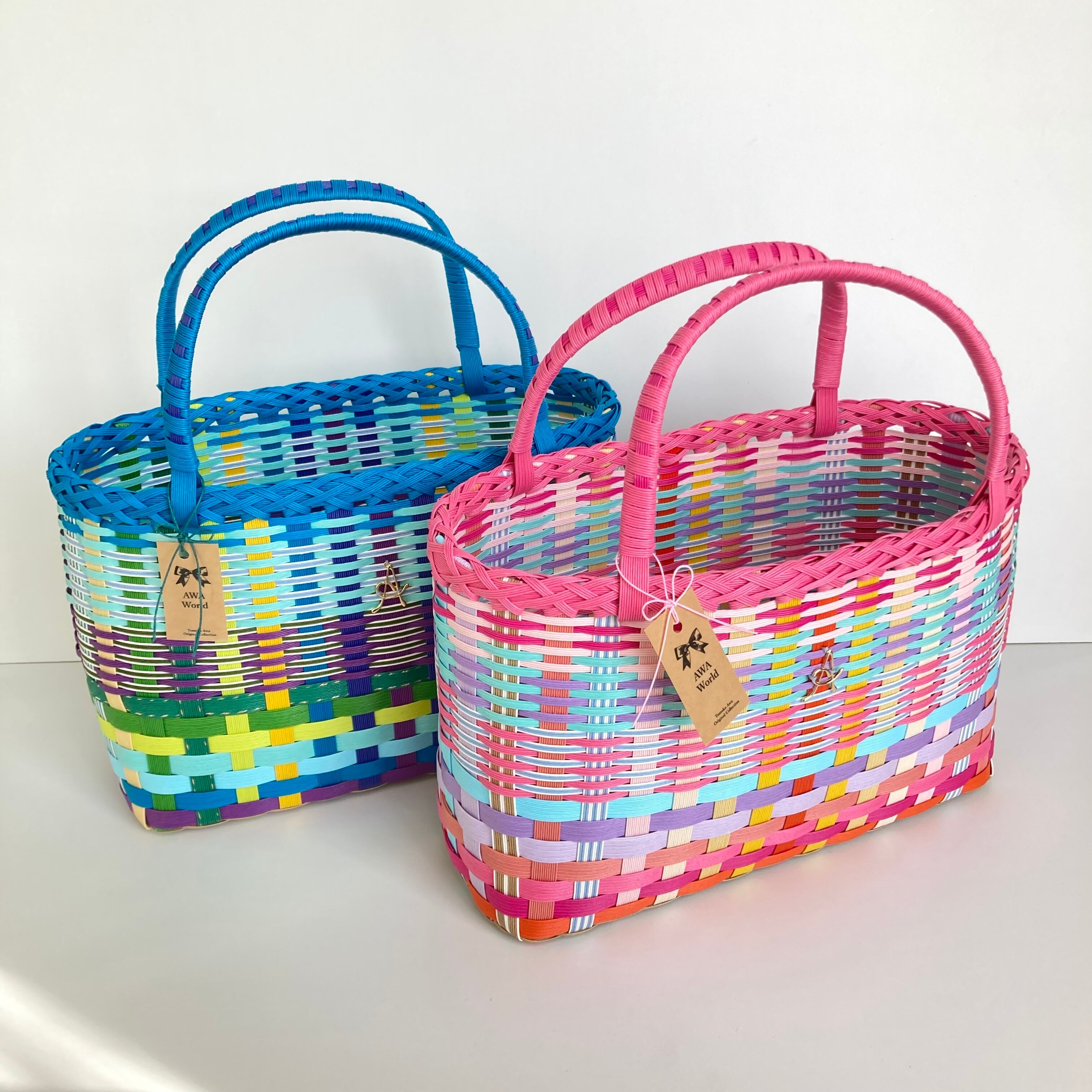 町の風景を彩る、ワイド2411 AWAworld Wサイズカゴバッグ。その存在感はまさに一目でわかる、大容量のバッグです。しっかりと編まれた素材は丈夫で、重たい荷物でも安心して持ち運びができます。日常使いからお出かけまで、様々なシーンで活躍すること間違いなしです。