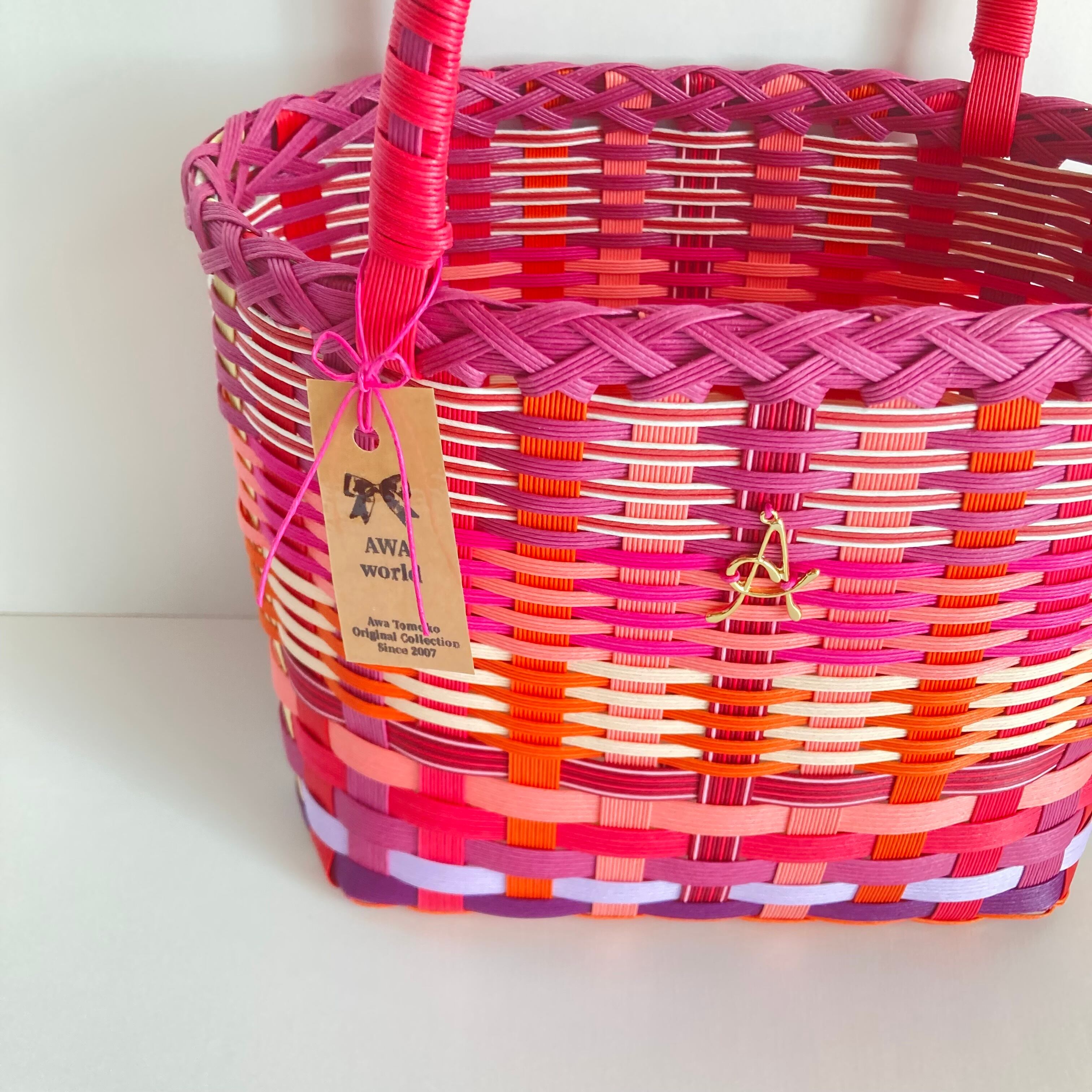 クラフトバンドで作成したカラフルで軽くて使いやすい大きさのカゴバッグです。